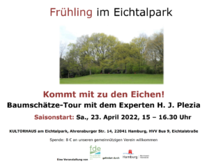 „Das Bundesprogramm ist bis Ende 2024 befristet. In 2022 bis 2023 werden vorrangig Konzeptions-, Beteiligungs- und Planungsarbeiten erfolgen. Die bauliche Umsetzung und Realisierung der Maßnahmen ist für 2023 und 2024 vorgesehen“, prognostiziert das Bezirksamt Wandsbek. Hoffentlich können wir dann bald alle – wie einst schon Matthias Claudius – in Ruhe einen Baum im Eichtalpark umarmen. (KK)
