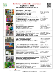 Mittwoch, 27.9., 15–16.30 h, KULTORHAUS am Eichtalpark